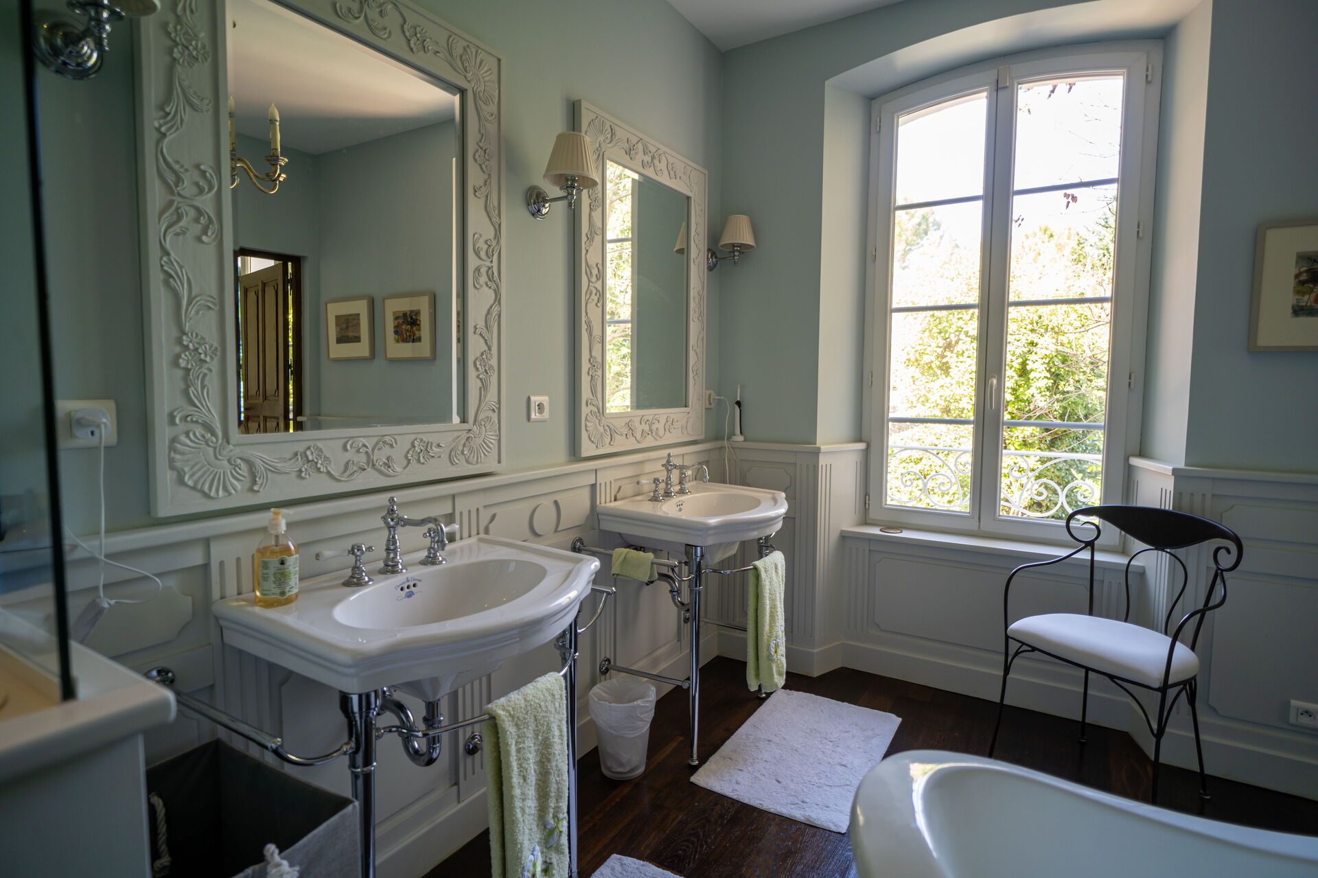 Badeværelse: dobbeltvask, bruser, WIFI internet, internet.