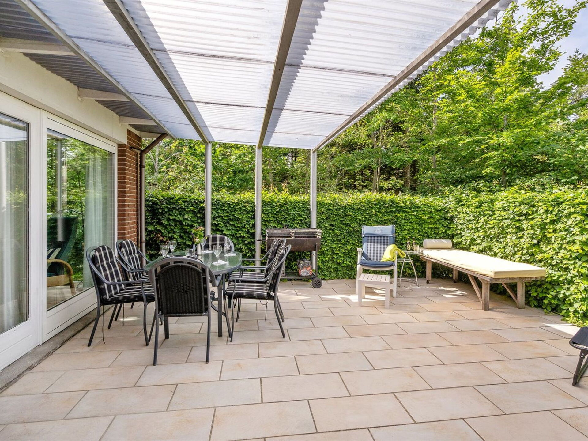 Enfamiliehus, bygget i 1982. 2.9 km fra havet. Til alene benyttelse: uberørt grund 1'252 m2. Udendørs brus, terrasse (50 m2), grill, legeplads (gynge). I huset: vaskemaskine, tørretumbler. Parkeringsplads ved huset. Carport. Fødevarebutik 1 km. Ejeren accepterer ikke nogen ungdomsgrupper.