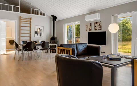 Enfamiliehus, bygget i 2009. 300 m fra havet. Til alene benyttelse: uberørt grund 1'500 m2, velplejet have. Terrasse (52 m2). I huset: sauna, vaskemaskine, tørretumbler. Parkeringsplads ved huset. Carport. E-ladestation. Fødevarebutik 700 m. Golfbane 2.5 km. Ejeren accepterer ikke nogen ungdomsgrupper.