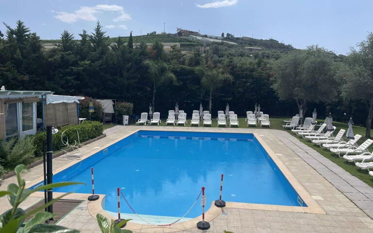 Lille ferieanlæg "Camper Village". 6 huse i resortet. Ovenfor Santo Stefano al Mare, 2 km fra bymidten, 15 km fra centrum af Sanremo, 15 km fra bymidten af Imperia, isoleret, rolig, solrige beliggenhed på en bakke, 2 km fra havet, i det grønne, i skoven. Til medbenyttelse: park 3'000 m2 (indhegnet) med planter, pool (15 x 7 m, Sæsonbestemt tilgængelighed: 01.Jun. - 30.Sep.). Brus/toilet i poolområdet, terrasse, Underholdning af poolen af ejeren/gartneren. I anlægget: reception, restaurant, bar, morgenmadsrum, adgang til internet, cykelrum, vaskemaskine (ekstra) (til medbenyttelse). Rundstykkeservice. Tilkørsel til 50 m til huset. Parkeringsplads. Indkøbsforretning, fødevarebutik, bageri 900 m, sandstrand "Santo Stefano al Mare" 900 m. Nærliggende attraktioner: Padel Tennis 100 m. Bemærk venligst: bil anbefales.