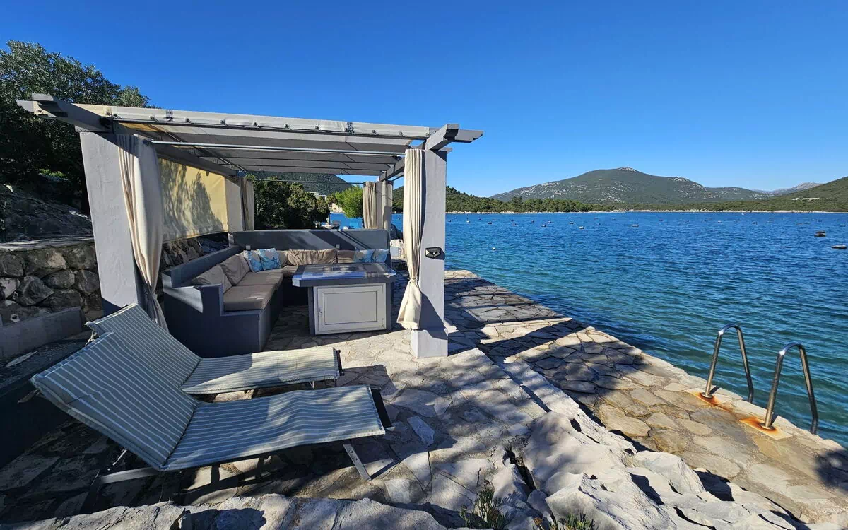Mali Ston 1 km fra Ston: 3-familiehus "Waterfront Oasis", omgivet af træer. Isoleret, rolig, solrige beliggenhed, 70 m fra havet. Til medbenyttelse: grund 15'000 m2 med træer. I huset: adgang til internet. 160 m lang, tilkørsel (natursti). Parkeringsplads (for 2 biler) ved huset på grunden. Indkøbsforretning 1.2 km, restaurant 450 m, café 1.2 km, busstoppested 1.4 km, strand belagt med beton 70 m. Nærliggende attraktioner: Solana Ston 1.5 km. Bemærk venligst: ikke egnet for børn under 10 år. På forespørgsel: flygpladstransport til ferie-området. Ejeren bor i et separat parcelhus. Flyveplads 72 km fra huset.