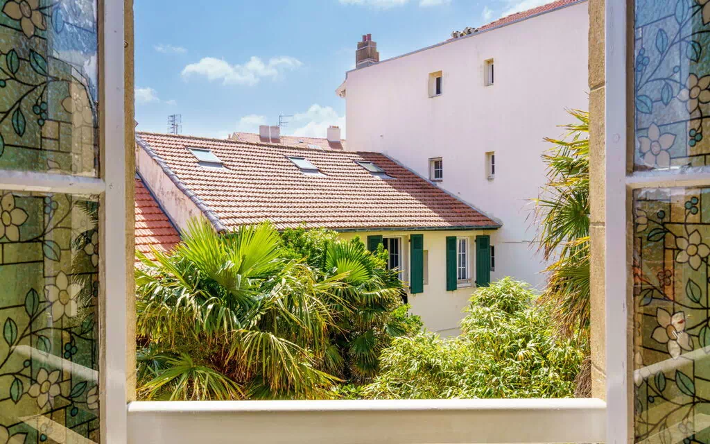 Lille lejlighedshus "Maison Simonne", på 2 etager. I bymidten fra Biarritz, centrale beliggenhed boligområde, 300 m fra stranden. Indkøbsforretning 300 m, fødevarebutik 200 m, restaurant, bageri 300 m, busstoppested "Continental" 200 m, sandstrand "La Grande Plage" 300 m, varmtvandsbad "Thalmar" 2.6 km. Golfbane (18 hul) 1.4 km, surfskole 300 m. Nærliggende attraktioner: Marché des Halles 650 m, Port des Pêcheurs 950 m, Aquarium 1.2 km, Phare de Biarritz 1.5 km, Bayonne 7.4 km, Saint-Jean-de-Luz 15 km. Vandrestier La Rhune 26 km. Bemærk venligst: ingen elevator.