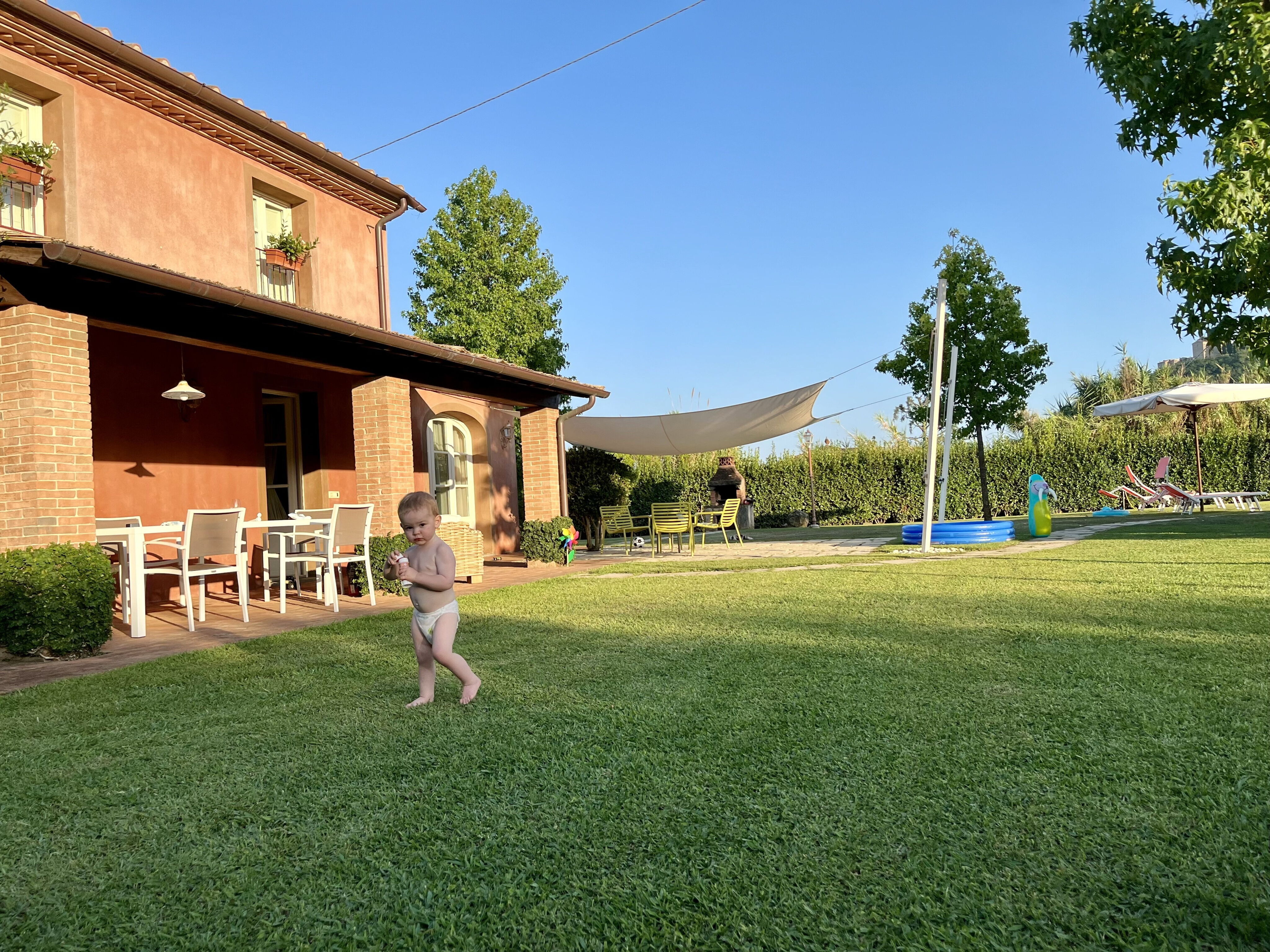 Met hele kleine kinderen die net kunnen lopen is het wel opletten met de trappen in het huis, het zwembad en de ondergrondse putten achter het huis. Een hekje zou fijn zijn.