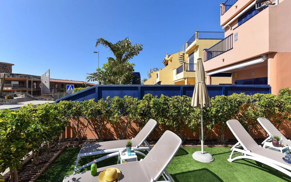 Børnevenligt, smuk, hyggeligt bungalow "Meloneras Bahía 10HH". Ved bykanten Maspalomas, solrige beliggenhed, udmærket område: midt i centrum men stadig stille, direkte ved stranden. Til medbenyttelse: have, pool (Sæsonbestemt tilgængelighed: 01.Jan. - 31.Dec.). Børnepool, udendørs brus. Til alene benyttelse: grund. Havemøbler, grill. I huset: aircondition, vaskemaskine, tørretumbler. Indkøbsforretning 3 km, fødevarebutik 3 km, supermarked 1 km, restaurant 3 km, busstoppested "Hospital Meloneras" 750 m, sandstrand "1000", pool 5 m. Golfbane (18 hul) 1.8 km. Bemærk venligst: bil anbefales. Velegnet for familier, passenede till ældre. Ejeren accepterer ikke nogen ungdomsgrupper. Flyveplads 36 km fra huset.