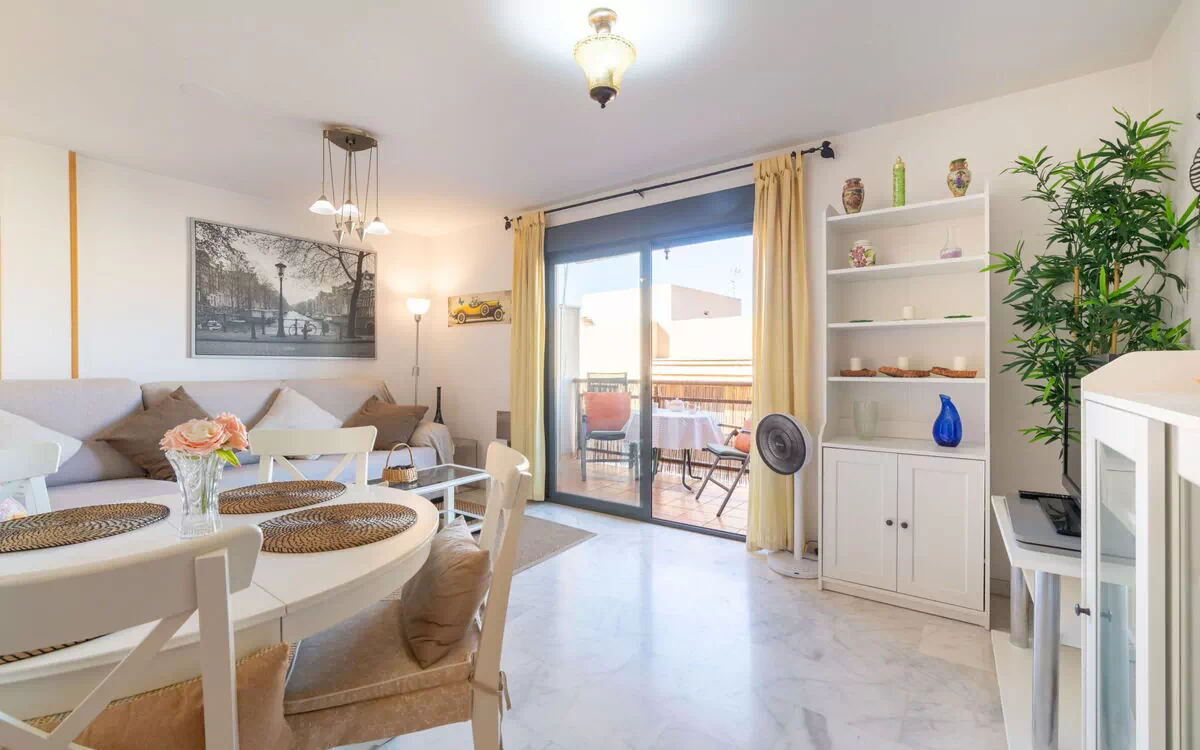 Lille flerfamiliehus. Solrige beliggenhed, udmærket område: midt i centrum men stadig stille, 400 m fra havet, 400 m fra stranden. Til medbenyttelse: pool (9 x 5 m, 120 - 170 cm dyb, Sæsonbestemt tilgængelighed: 17.Jun. - 17.Sep. poolen åbningstider: 10:00-15:00 og 17:00-22:00). Udendørs brus. I huset: elevator. Parkeringsplads (overdækket) ved huset, offentlige parkeringspladser på vejen. Supermarked 400 m, restaurant, bar, café 50 m, busstoppested 500 m, banegård 47 km, sandstrand "Romanilla" 400 m. Ejeren accepterer ikke nogen ungdomsgrupper. Fredfyldt og roligt område. Stilhed og gode manerer er forventet.