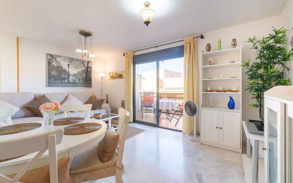 "Dioniso - Playa Romanilla", 2-værelse-lejlighed 65 m2 i 2. etage. Hensigtsmæssig og komfortabelt indrettet: stue/spisestue med 1 dobbelt sovesofa (135 cm, længde 190 cm), spisebord, digital TV, fladskærms TV, klimaanlæg, ventilator og varmluft opvarming. Udgang til altan. 1 værelse med 1 fransk seng (160 cm, længde 200 cm), klimaanlæg, ventilator og varmluft opvarming. Åbent køkken (ovn, opvaskemaskine, 4 keramiske kogeplader, Brødrister, kedel, mikroovn, fryser, elektrisk kaffemaskine) med serveringslem. Bad/bidet/WC. Stor altan. Altanmøbler. Til benyttelse: vaskemaskine, strygejern højstol, barneseng til 2 år, hårtørrer. Internet (trådløs LAN [WLAN], gratis). Parkeringsplads (overdækket) ved huset. Bemærk venligst: velegnet for familier. Ikke-ryger lejlighed. VFT/AL/09241 ESFCTU0000040140007720780000000000000000VFT/AL/092413