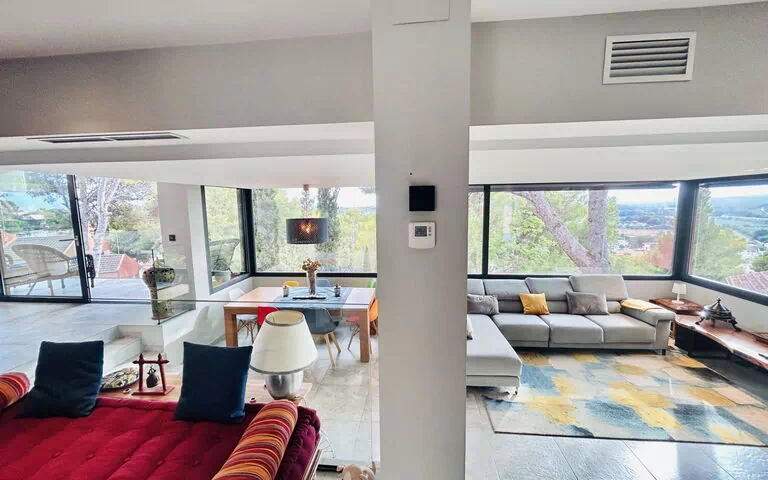 "Alta Garrotxa", 5-værelse-villa 280 m2. Emner egnet for 6 voksne + 2 børn. Rummelig, komfortabelt indrettet: stue/spisestue med digital TV. Udgang til havesideplads, til pool. 1 værelse med 1 sovesofa (150 cm, længde 190 cm), brus/WC. Åbent køkken (ovn, opvaskemaskine, 4 keramiske kogeplader, Brødrister, kedel, mikroovn, elektrisk kaffemaskine, kogeø). Særskilt toilet. Klimaanlæg, gulvvarme. Nederste etage: 1 værelse med 1 fransk seng (1 x 180 cm, længde 190 cm), brus/WC. 1 værelse med 1 fransk seng (1 x 140 cm, længde 190 cm). 1 værelse med 1 fransk seng (1 x 180 cm, længde 200 cm). Bad/WC. Klimaanlæg, gulvvarme. Havesiddeplads. Havemøbler, grill, liggestole (4), siddeplads. Panoramaudsigt over havet og landskabet. Til benyttelse: vaskemaskine, strygejern højstol, barneseng til 3 år, hårtørrer. Internet (trådløs LAN [WLAN], gratis). Bemærk venligst: ikke-ryger hus. HUTT-066172
