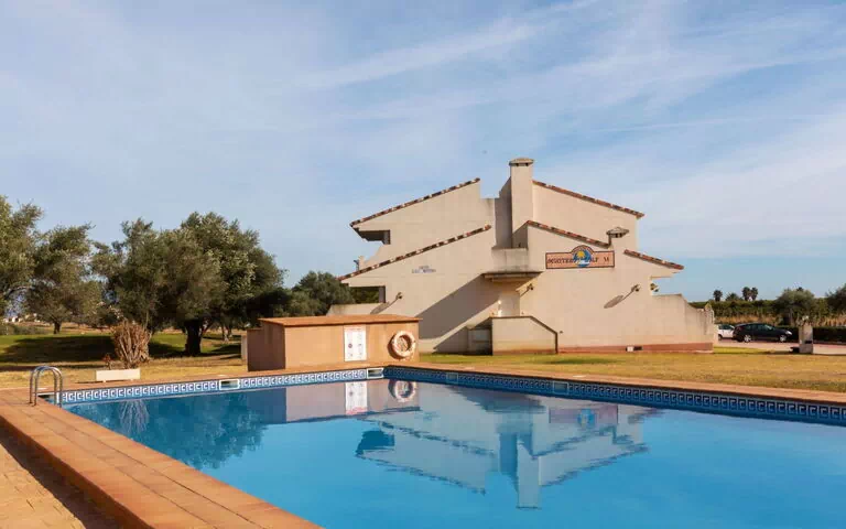 PANORAMICA GOLF 15 km fra Vinaròs centro: Flerfamiliehus "Eduard Golf". 25 lejligheder i bygningen. Rolig beliggenhed, 15 km fra havet, 15 km fra stranden, på golfbanen. Til medbenyttelse: liggeplæne, pool kantet (7 x 18 m, 120 - 200 cm dyb, Sæsonbestemt tilgængelighed: 15.Jun. - 15.Sep.). Udendørs brus. I anlægget: restaurant, bar, aircondition. Trappe (8 trin) til huset. Parkeringsplads nr. A15. Busstoppested "C/ J.Bautista Rochera-Sant Jordi" 7.8 km, togstation "Vinaròs" 18 km, sandstrand "Vinaròs" 15 km. Golfbane (18 hul) 10 m. Nærliggende attraktioner: Peñiscola 30 km, Delta del Ebro 40 km, Port Aventura 100 km, Museo de las Ciencias - Valencia 120 km. Kendte søer nås nemt: Pantano La Senia 25 km. Vandrestier Parque natural Sierra de Irta 35 km, Foradada del Montsià 25 km. Bemærk venligst: bil anbefales, ingen elevator. Ejeren accepterer ikke nogen ungdomsgrupper. 24-timers overvågning. Objoktnummer ES9600.305.1 er beliggende på samme grund. Fredfyldt og roligt område. Stilhed og gode manerer er forventet.