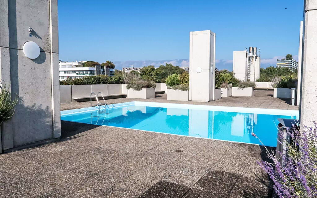 Residens "Ciomal", på 9 etager. I byen, 3 km fra bymidten af Genève, centrale, livlig, solrige beliggenhed, i en blind vej. Til medbenyttelse: pool kantet (Sæsonbestemt tilgængelighed: 15.Maj. - 30.Sep. poolen åbningstider: 07:00-21:00). Brus/toilet i poolområdet. I huset: elevator, centralvarme. Fælles garage. Supermarked 450 m, restaurant 350 m, bageri 650 m, busstoppested "Intercontinental" 300 m, banegård "Genève-Sécheron" 1.3 km, park "Parc de Trembley" 800 m, 1.8 km. Nærliggende attraktioner: Palais des Nations 1 km, Jet d'Eau 4 km, Aeroport Geneve 4 km, Palexpo 4 km. Bemærk venligst: bil anbefales.