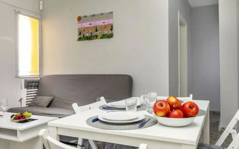 "Edificio 2000", 3-værelse-lejlighed 56 m2. Hensigtsmæssig og pæn indrettet: stue/spisestue med digital TV og klimaanlæg. Udgang til terrasse. 1 værelse med 1 fransk seng (150 cm, længde 190 cm). 1 værelse med 1 fransk seng (190 cm, længde 135 cm). 1 værelse med 1 x 2 køjesenge (90 cm, længde 190 cm), ventilator. Lille kogeniche (2 keramiske kogeplader, Brødrister, mikroovn, elektrisk kaffemaskine, Kapsler til kaffemasin (Nespresso) ekstra). Brus/WC. Lille terrasse. Flotte udsigt over byen. Til benyttelse: vaskemaskine, strygejern hårtørrer. Internet (trådløs LAN [WLAN], gratis). Bemærk venligst: velegnet for familier. Ingen parkeringsplads. Maksimum 1 husdyr/hund tilladt. VT-39557-CS