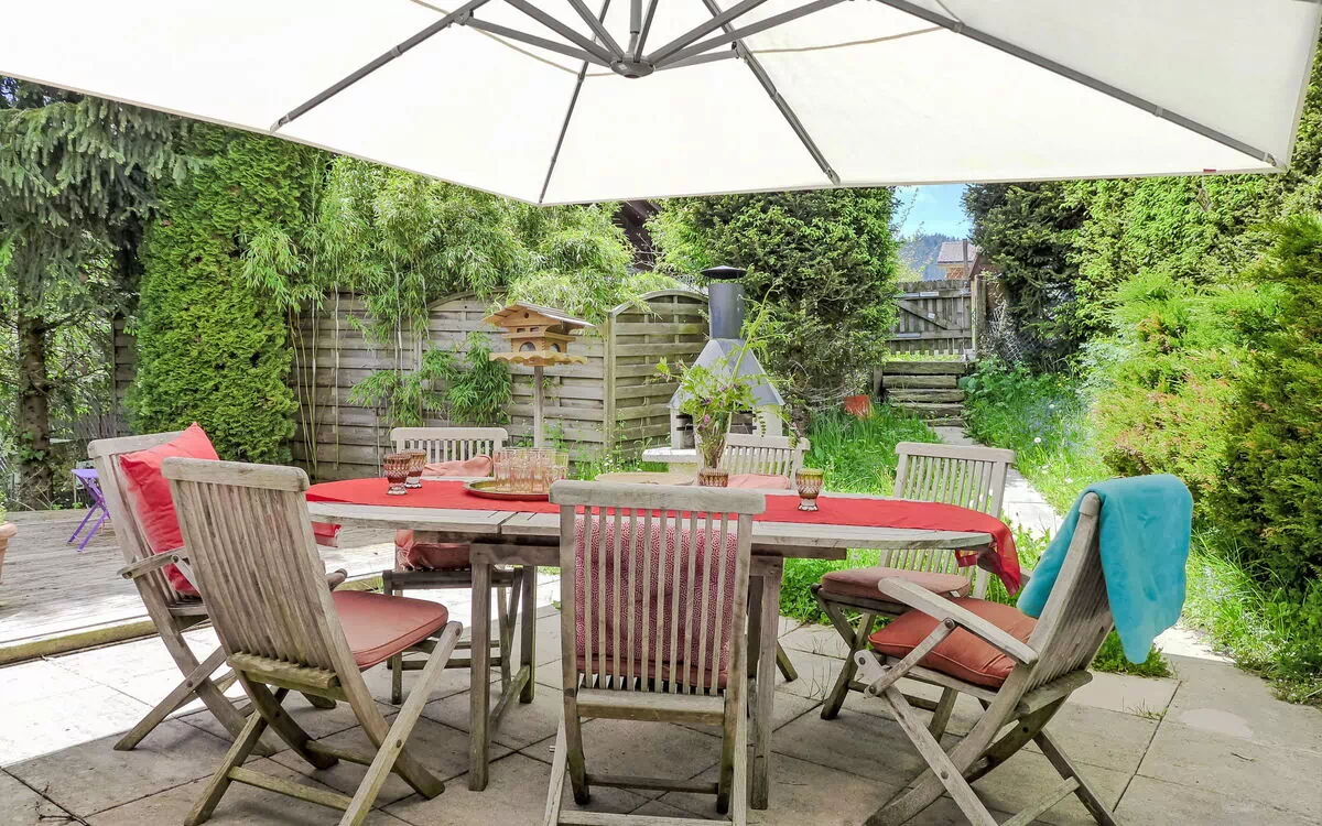 Hyggeligt, komfortabelt enfamiliehus "Chalet Rebhalde", på 3 etager, fritstående. Rolig, solrige beliggenhed ved bakke. Til alene benyttelse: stor have (indhegnet) med græsplane og planter. Terrasse, terrasse, havemøbler. I huset: centralvarme, vaskemaskine, tørretumbler, tørrerum. Smal tilkørsel til til huset. Parkeringsplads (for 3 biler) ved huset. Fødevarebutik 600 m, supermarked 8 km, restaurant 600 m, bageri 800 m, busstoppested "Schönried, Bahnhof" 600 m, banegård "Schönried" 600 m.