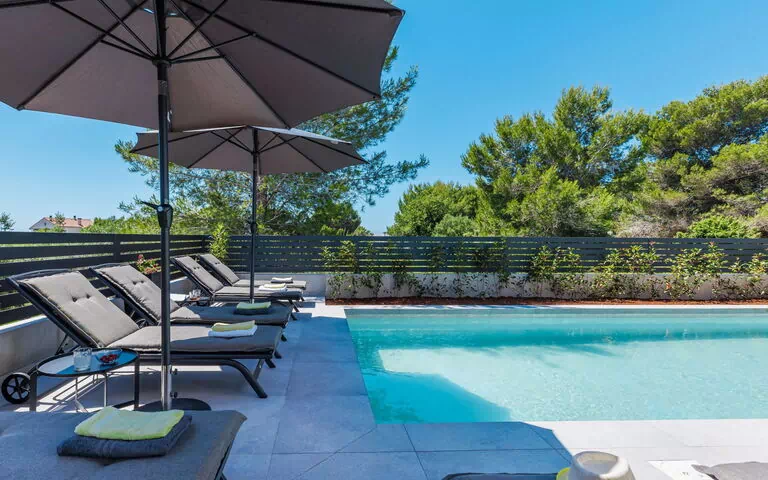 Moderne villa "David", på 2 etager. 2 km fra bymidten af Medulin, 12 km fra centrum af Pula, rolig, solrige, høj beliggenhed, 1.5 km fra havet, 1.5 km fra stranden. Til alene benyttelse: grund 700 m2, have med græsplane og planter, pool kantet, med varme (13 x 4 m, 140 cm dyb, Sæsonbestemt tilgængelighed: 01.Apr. - 15.Nov.) med indetrappe og salt-elektrolys. Udendørs brus, grill, Underholdning af poolen af ejeren/gartneren. I huset: adgang til internet, sauna, boblebad, aircondition, vaskemaskine. Parkeringsplads (for 3 biler) ved huset på grunden. Indkøbsforretning 1.5 km, supermarked 2 km, restaurant 500 m, busstoppested 800 m, sandstrand "Bijeca" 2 km kiselstenstrand 1.5 km, klippestrand 1.5 km, strandliggende pool 1.5 km. Surfskole 1 km, tennis 1 km, ridehal 500 m, vandrestier fra huset 100 m, cykelvej 150 m. Nærliggende attraktioner: Amphitheater 12 km. Pool med varme (ekstra). Venligst meddele mindst 7 dage før ankomst, hvis pool opvarmning er påkrævet. Videoovervågning af ejendommen.
