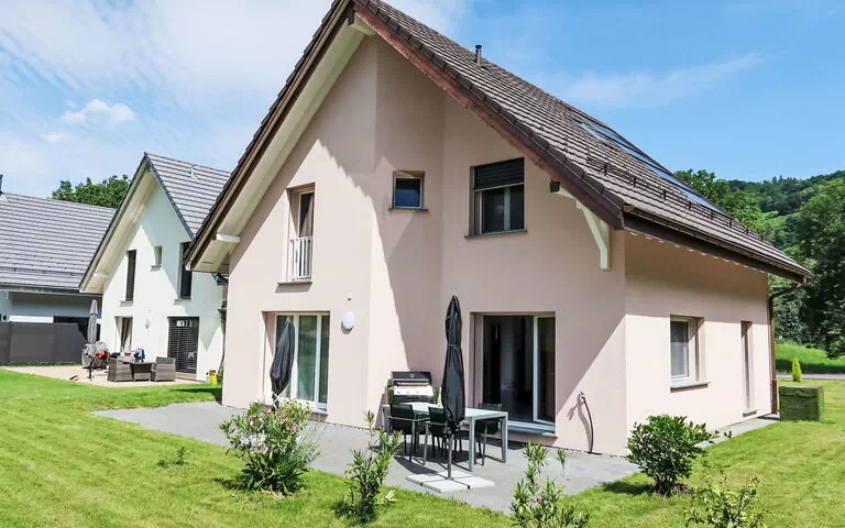 Rækkehus på 3 etager. Rolig, solrige beliggenhed i en bydel, i en blind vej. Til alene benyttelse: stor have, græsmark, frugthave. I huset: centralvarme. Parkeringsplads (for 4 biler) ved huset. Supermarked 700 m, restaurant 600 m, café 450 m, 10 minut promenad til center, varmtvandsbad "Lavey-les-Bains" 7 km. Golfbane (18 hul) 12 km, svævebane 12 km. Nærliggende attraktioner: Grotte aux Fées Ste Maurice 4.6 km, Musée de la vignel à Aigle 11 km, Mines de Sel de Bex 5 km, Fondation Pierre Gianadda, Martigny 24 km, Montreux 25 km. Kendte skiområder nås nemt: Villars/Gryon 12 km. Kendte søer nås nemt: Lac Léman 21 km. Vandrestier Villars/Gryon 12 km. Ejeren accepterer ikke nogen ungdomsgrupper. Fredfyldt og roligt område. Stilhed og gode manerer er forventet.