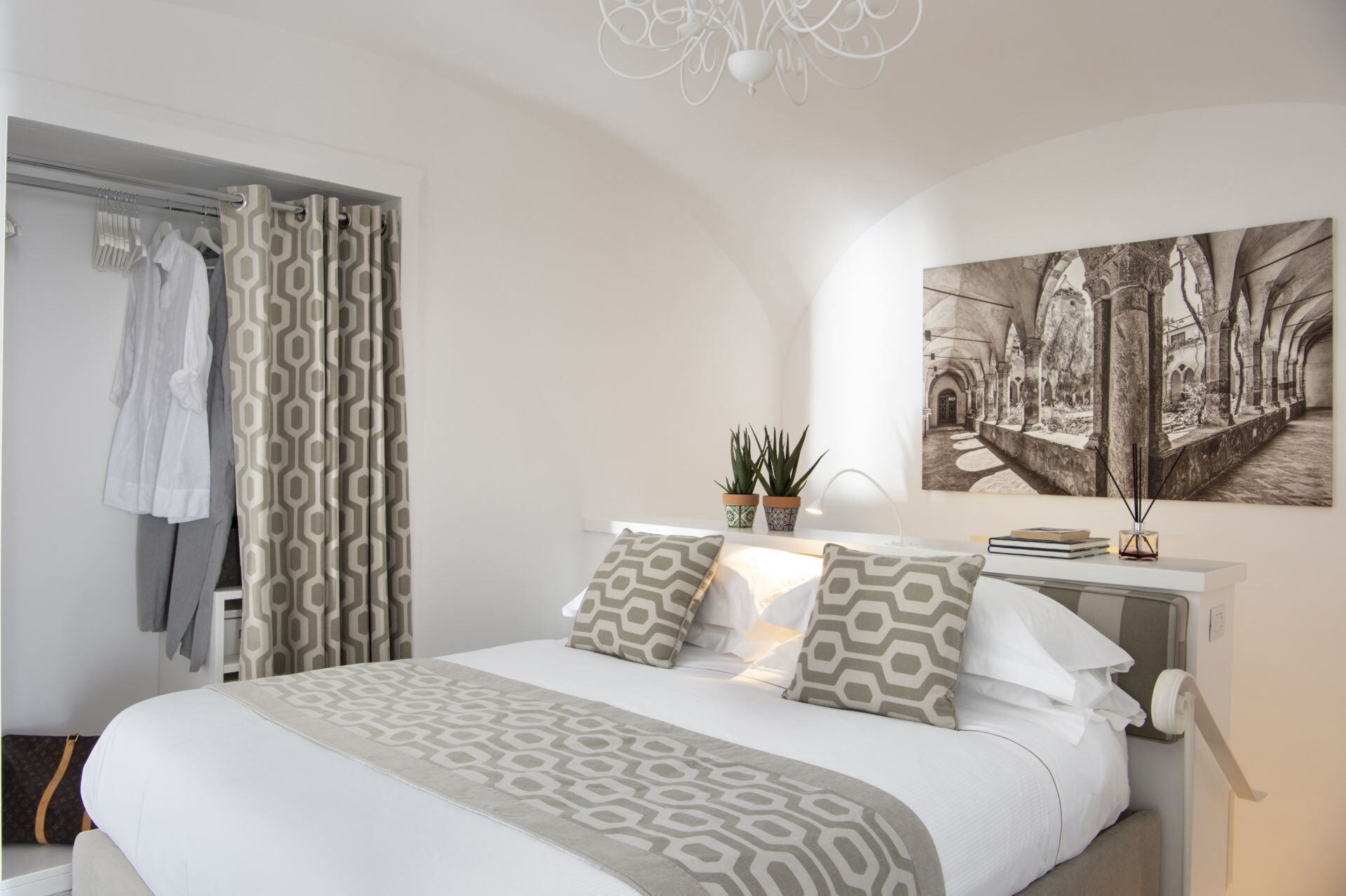 Villa Gilda kan rumme op til 9 gæster fordelt på 5 elegant indrettede soveværelser betjent af 4 badeværelser, fordelt over to etager forbundet med en intern trappe på 22 trin. På den øverste etage vil De finde en lys loungeområde møbleret med store sofaer og stole, der giver et imødekommende rum til afslapning. Det første soveværelse på dette niveau har en romantisk himmelseng og en komfortabel futon sammen med satellit-TV, et lille vintage-køleskab og et walk-in garderobeskab med adgang til en terrasse med udsigt over Vesuv og havet. Det andet soveværelse indeholder en dobbeltseng, et fjernsyn, en safe og et walk-in garderobeskab, også med sin egen balkon med udsigt over Vesuv og havet. Det tredje soveværelse er møbleret med en dobbeltseng, der på anmodning kan arrangeres som to enkeltsenge, sammen med en safe og et walk-in garderobeskab. Det første badeværelse på den øverste etage har en dobbelt håndvask og en stor brusekabine med en dejlig kølys, der giver glimt af Napoli-bugten, tilgængelig fra loungen. Det andet badeværelse, tilstødende til andet og tredje soveværelse, er udstyret med en stor brusekabine, toilet, bidet, håndvask og hårtørrer, tilgængelig fra korridoren. På den nederste etage er det fjerde soveværelse usædvanligt rummeligt og indeholder en kingsize dobbeltseng, en enkelt seng, fjernsyn og et walk-in garderobeskab under et inspirerende hvælvet loft bygget af tufsten, der dateres tilbage til romertiden, med adgang gennem et lille studie eller direkte fra haven via en glasdør. Det tredje badeværelse på dette niveau, ved siden af det fjerde soveværelse, inkluderer en stor brusekabine, bidet, toilet, håndvask og hårtørrer. Spisestuen på den nederste etage indeholder et langt spisebord, et elegant sideskab, et morgenmadsbuffetbord og et stort fjernsyn, forbundet til den øverste etages lounge ved en ståltrappe fastgjort direkte til væggen med en ekstremt romantisk buet altan med et lille bord til intime øjeblikke med udsigt over haven og bugten. Det specialbyggede køkken er veludstyret og tilgængeligt til haven gennem en glasdør. Det fjerde badeværelse, tilgængeligt fra køkkenet, er udstyret med en bruser, bidet, toilet, håndvask og hårtørrer.