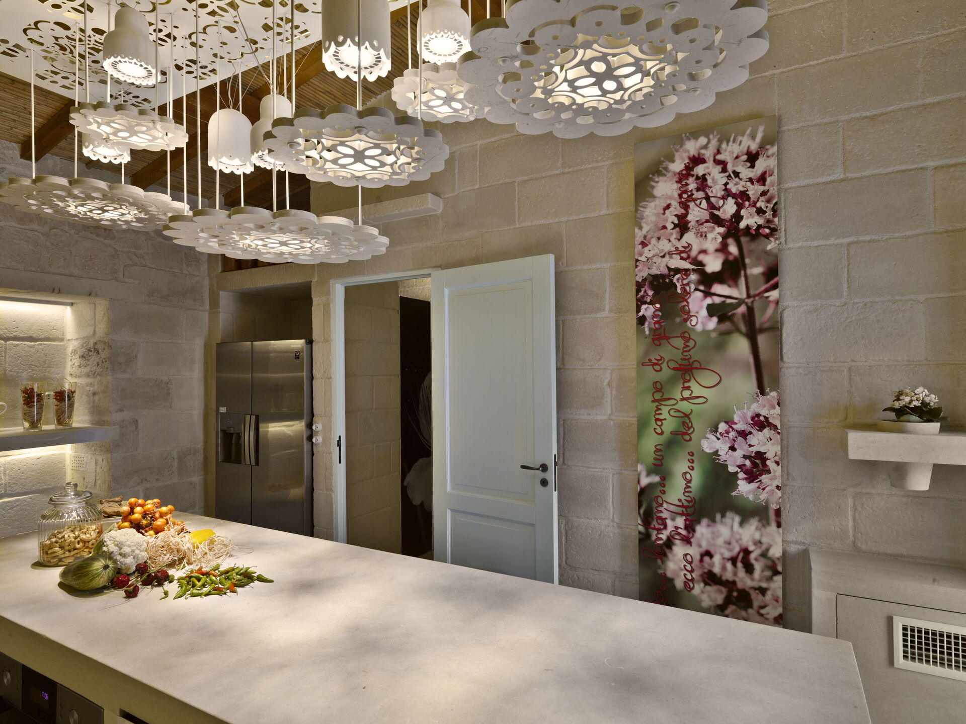 The Masseria is made up of the main body equipped with a living room and kitchen and six bedrooms with independent entrances from the garden that can accommodate up to 12 people.