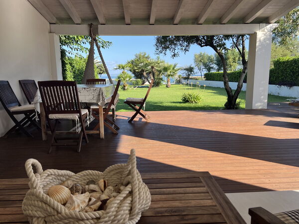 Ejendommen, som har en skøn beliggenhed ved havet, har direkte adgang til stranden, en dejlig have med spabad og to store, veludstyrede terrasser.