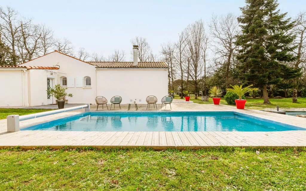 Enfamiliehus "Jaffe". Ved bykanten, 4 km fra centrum af Royan, 4 km fra havet, 4 km fra stranden. Til alene benyttelse: grund 4'000 m2 (indhegnet) med træer, pool med varme (8 x 4 m, 150 - 150 cm dyb, Sæsonbestemt tilgængelighed: 01.Maj. - 30.Sep.) med udvendige jalousier/ skodder. Fødevarebutik 1 km, supermarked 2 km, bageri 1 km, busstoppested "Pasteur" 350 m, banegård "Royan" 4 km, sandstrand "Grande Conche - Royan" 4 km, svømmehal 4 km, varmtvandsbad "Thalassothérapie Thalazur Royan" 5 km. Lystbådhavn 5 km, golfbane (18 hul) 8 km, surfskole 5 km, ridehal 8 km, cykelvej 100 m. Nærliggende attraktioner: Palais des Congrès - Royan 6 km, Embarcadère Royan - Le Verdon 6 km, Golf 18 trous de Royan 9 km, Centre équestre Maine Gaudin 9 km, Zoo de La Palmyre 16 km, Hippodrome - La Palmyre 17 km. Ejeren accepterer ingen grupper. Bemærk venligst: nøgleoverrækkelsen finder sted på kontoret Interhome Vaux sur Mer, 5 km borte. Hovedvej i nærheden.