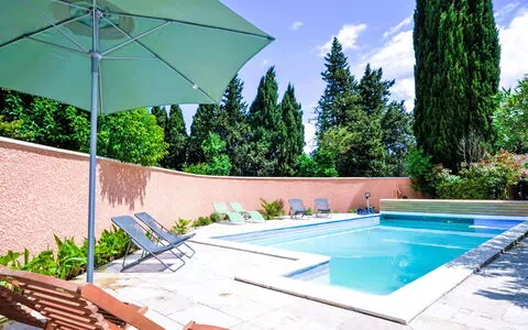 Graveson 9 km fra St Rémy de Provence: Enfamiliehus "Mas des Lavandes". Ved bykanten, 1.5 km fra centrum af de Graveson, rolig beliggenhed, i en blind vej. Til alene benyttelse: have 4'000 m2 (indhegnet), pool med varme (12 x 7 m, 240 - 350 cm dyb, Sæsonbestemt tilgængelighed: 01.Jun. - 30.Sep.) med indetrappe, udvendige jalousier/ skodder og alarmanlæg. Parkeringsplads (for 4 biler), single garage. Indkøbsforretning 1 km, supermarked 1 km, restaurant 800 m, bageri 1.7 km, busstoppested "La Pastorale" 900 m. Golfbane (6 hul) 10 km, tennis 250 m, ridehal 4.5 km. Nærliggende attraktioner: Avignon 16 km, St Rémy de Provence 9 km, Les Baux De Provence 24 km, Pont Du Gard 30 km, Beaucaire 12 km, Saintes Marie de la Mer 64 km. Vandrestier Massif des Alpilles 7 km, Parc Régional du Luberon 35 km, Réserve naturelle de Camargue 28 km.
