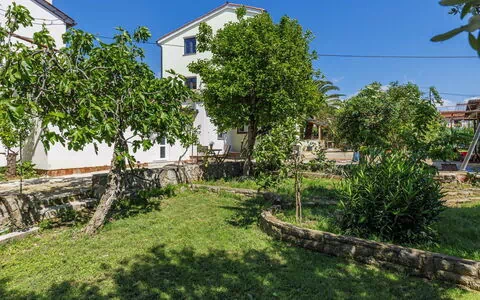 Galižana 5 km fra Pula: Smuk 3-familiehus. I byen, 500 m fra bymidten af Galižana, 5 km fra havet, 5 km fra stranden. Til medbenyttelse: grund 1'000 m2 (indhegnet), smuk have med græsplæne og træer. Terrasse, havemøbler, grill. I huset: adgang til internet. Parkeringsplads ved huset på grunden. Indkøbsforretning 500 m, supermarked 3 km, restaurant 3 km, busstoppested 500 m, kiselstenstrand 5 km, klippestrand 5 km. Bemærk venligst: 8 km fra huset.