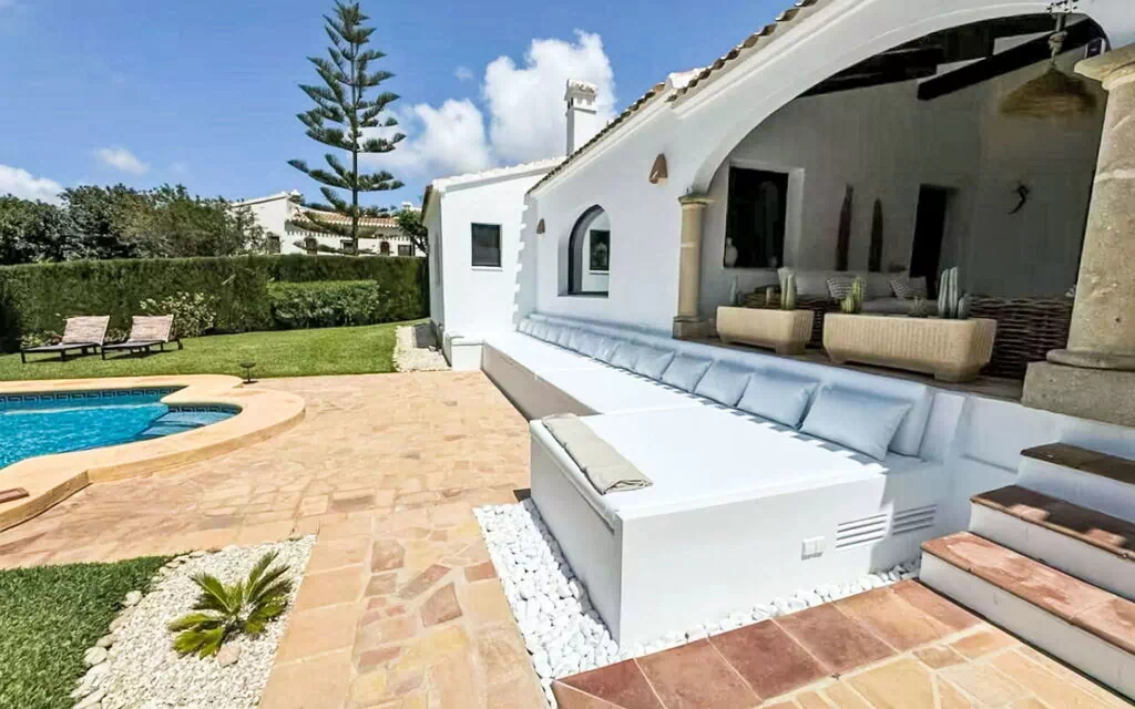 Meget stor, meget smuk, luksuriøse villa "Alborada", renoveret, omgivet af træer. I byen, 5.4 km fra bymidten af Javea - El Arenal, rolig, solrige beliggenhed, 5.4 km fra havet, 5.4 km fra stranden, i en blind vej. Til alene benyttelse: stor, smuk, velplejet have i forskellige niveauer, 2'700 m2 med græsplane, naturhave, græsmark, frugthave, pool kantet (10 x 5 m, 40 - 210 cm dyb, Sæsonbestemt tilgængelighed: 01.Jan. - 31.Dec.) med indetrappe. Udendørs brus, terrasse, pergola, havemøbler, grill, parkeringsplads ved huset. Supermarked 2 km, restaurant 1.9 km, café 2 km, busstoppested 4.5 km, sandstrand "El Arenal" 5.4 km, stenstrand "La Granadella" 6.5 km, klippestrand "Cala Blanca" 6.2 km. Lystbådhavn 5.6 km, marina 5.6 km, golfbane (18 hul) 1.4 km, surfskole 5.6 km, sejladsskole 5.6 km, tennis 5.5 km. Nærliggende attraktioner: Club de Golf Javea (18 Holes) 1.4 km. Ejeren accepterer ikke nogen ungdomsgrupper.