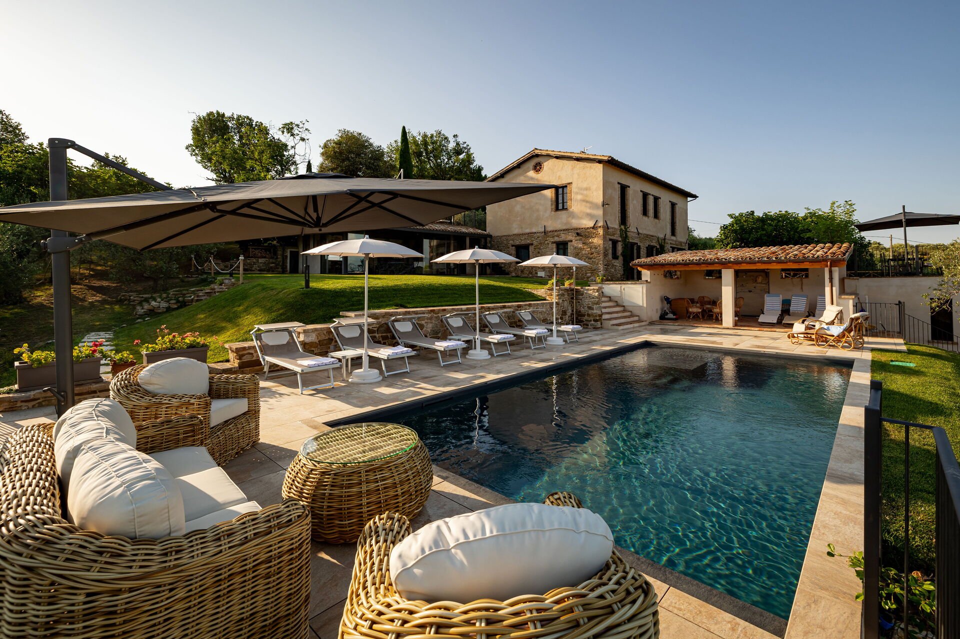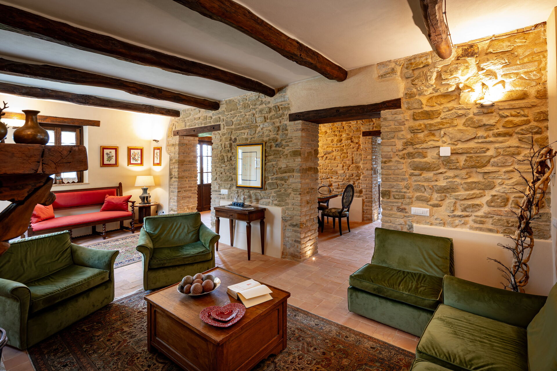 Ved ankomst vil I blive budt velkommen af ejeren eller repræsentanten og I vil finde en flot ren og velholdt ejendom med udsigt over bjergene og bakkerne ideel til en behagelig ferie i Umbrien. Uanset hvordan I tilbringer dagene - med sightseeing, museumsbesøg, shopping eller bare ved at køre rundt på landet, så kan I køle ned med familie og venner ved poolen, når I kommer hjem, hvilket er en perfekt måde at afslutte endnu en dejlig dag på i Umbrien. Udendørs vil I finde grill og gårdhave. At spise med venner og familie er en stor del af den italienske kultur. Benyt det velekviperede køkken til madlavning med lokale produkter, når du er på ferie. Køkkenet indeholder kaffemaskine, mikroovn, brødrister og køleskab, samt, masser af service og bestik til op til seks personer.