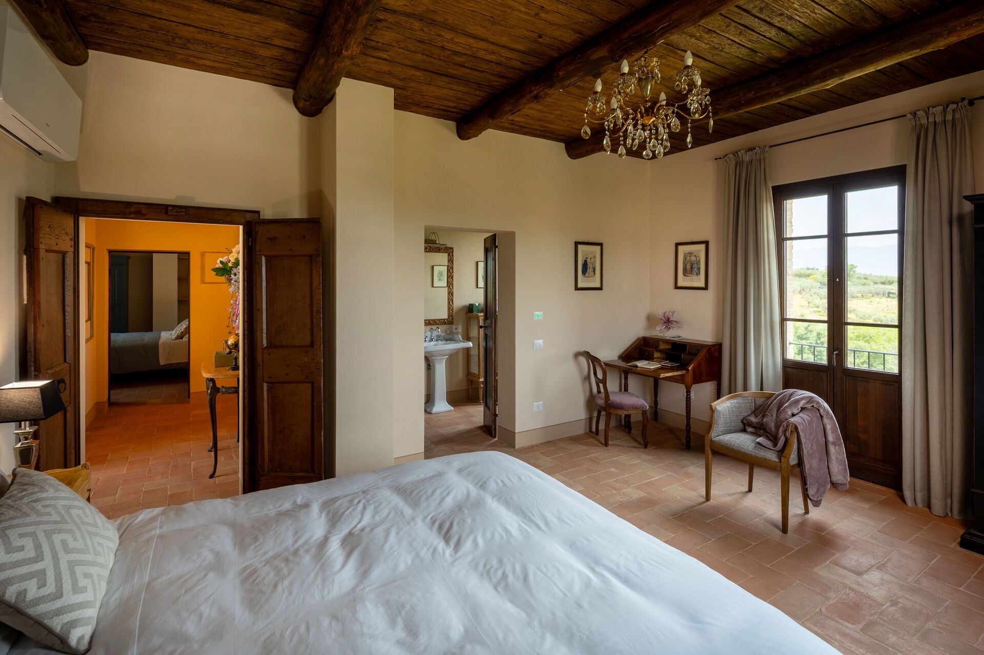 Soveværelse med bad 1 (25 m2): king size seng (bredde: 180m, længde: 210m), WIFI internet, klimaanlæg, myggenet, lænestol, skrivebord, vask, wc, bidet, bruser, hårtørrer.