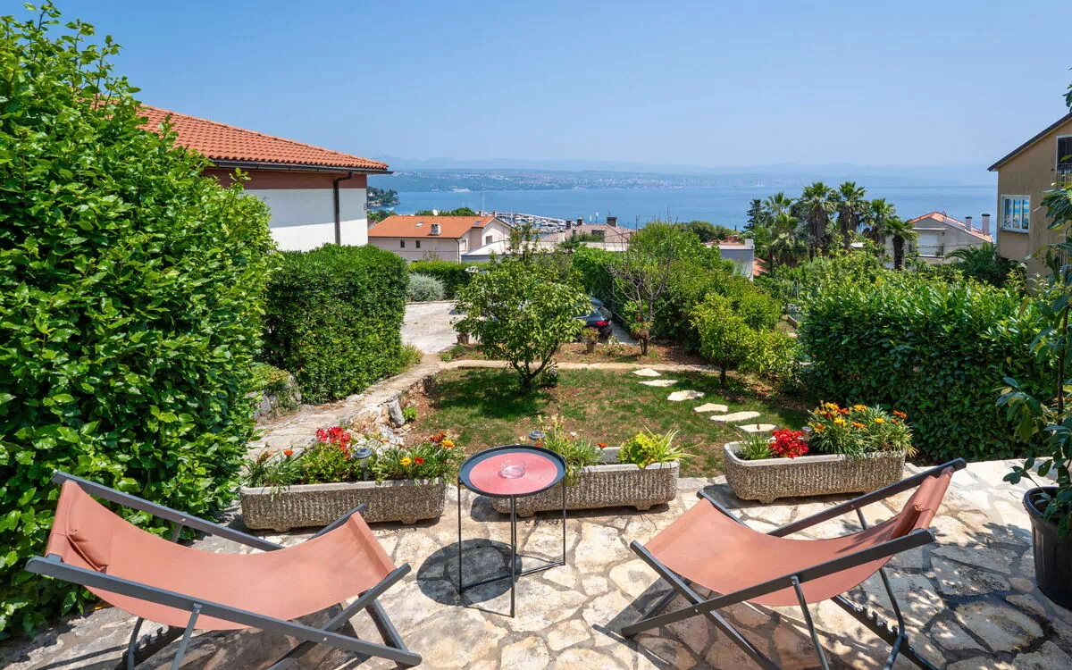 Ičići: 2-familiehus "Perla 1". 500 m fra bymidten af Ičići, 4 km fra centrum af Opatija, solrige, høj beliggenhed, 500 m fra havet, 550 m fra stranden. Til medbenyttelse: grund 1'200 m2 med græsplæne og planter. Grill. I huset: adgang til internet, vaskemaskine (til medbenyttelse). Parkeringsplads ved huset på grunden. Indkøbsforretning 500 m, restaurant, busstoppested 600 m, stenstrand, strandliggende pool, strand belagt med beton 550 m. Marina 700 m, vandrestier fra huset 550 m. Bemærk venligst: objoktnummer HR3102.108.1 er beliggende på samme grund.