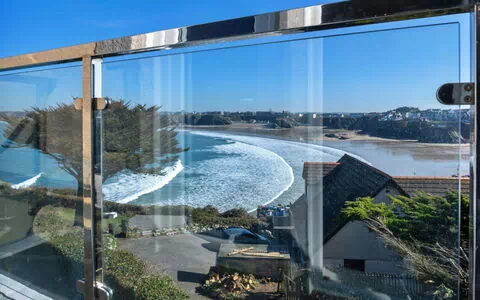 "Tidal Shores", 3-værelse-lejlighed 100 m2. Emner egnet for 4 voksne. Stue med 1 sovesofa, 1 udtræksseng, åben kamin og TV. 1 værelse med 1 fransk seng. 1 værelse med 2 senge. Køkken (ovn, opvaskemaskine, Brødrister, kedel, mikroovn, fryser, elektrisk kaffemaskine). Bad/WC, brus/WC. Altan. Udsigt over havet. Til benyttelse: vaskemaskine, tørretumbler, strygejern hårtørrer. Internet (trådløs LAN [WLAN], gratis). Parkeringsplads (1 Bil). Bemærk venligst: ikke-ryger lejlighed. Brandalarm.
