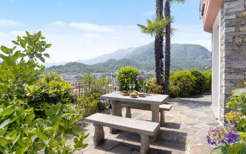 "Designer Ferienwohnung Il Soldunese", 3-værelse-lejlighed 70 m2, på forhøjet stueetage, syd vendt. Emner egnet for 2 voksne + 2 børn. Lys, fuldstændig renoveret i år 2025, komfortabelt og luksuriøs indrettet: åben stue/spisestue med 1 dobbelt sovesofa (2 x 90 cm, længde 200 cm), internationale TV-kanaler og fladskærms TV. Udgang til terrasse, til havesideplads. 1 værelse med 1 dobbeltseng (2 x 90 cm, længde 200 cm). Udgang til terrasse, retning syd. Åbent køkken (ovn, opvaskemaskine, 4 keramiske kogeplader, Brødrister, kedel, elektrisk kaffemaskine, Kapsler til kaffemasin (Nespresso) ekstra). Udgang til terrasse. Brus/WC, brus/bidet/WC. Klimaanlæg, gulvvarme. Opvarme kun tilgængelig fra 01.10. til 30.04. Naturlige stengulve. Stor terrasse 40 m2, syd vendt. Havemøbler, altanmøbler. Herlige panoramaudsigt over søen, landskabet og byen. Til benyttelse: vaskemaskine, barneseng til 2 år (ekstra), hårtørrer. Internet (trådløs LAN [WLAN], gratis, Båndbredde: 200 Mbit/s). Bemærk venligst: ikke-ryger lejlighed. NL-00012453