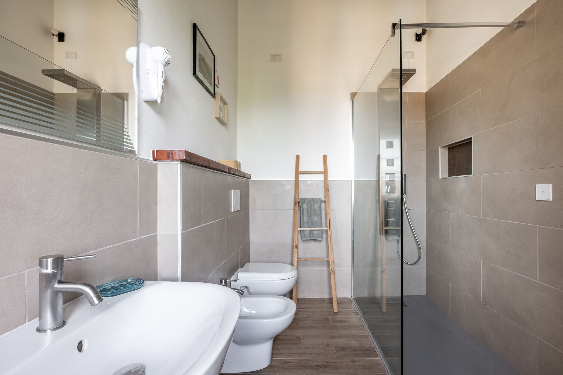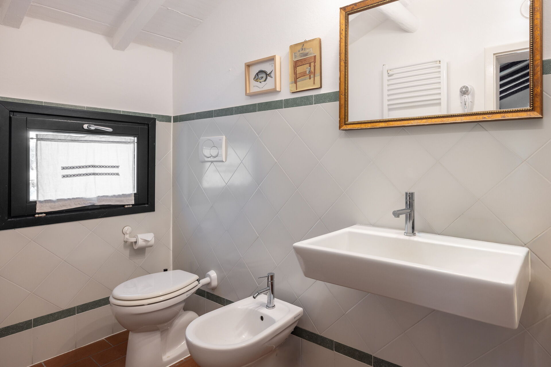 Badeværelse: vask, wc, bidet, bruser, hårtørrer, WIFI internet.