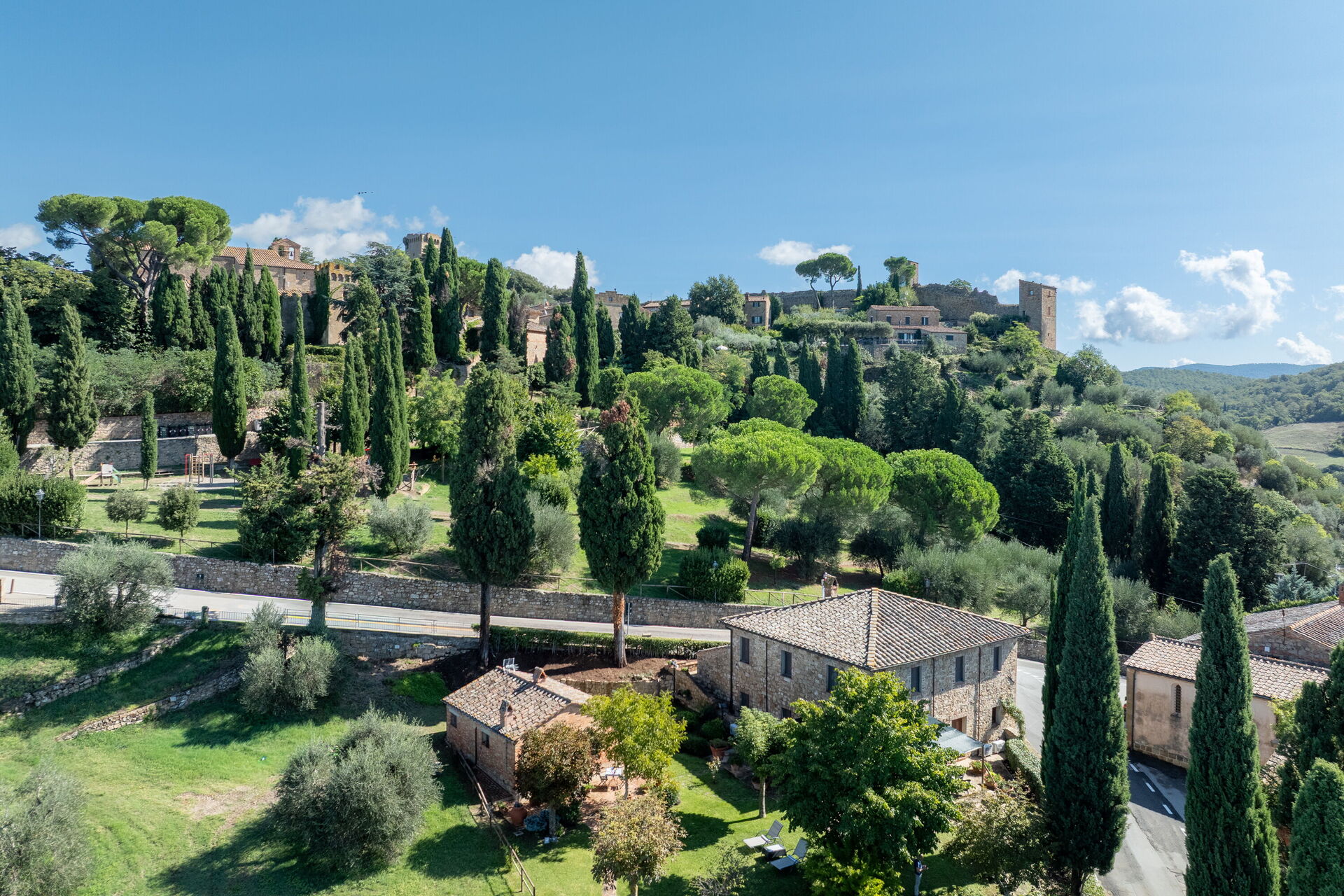 De fleste kan lide at besøge nærliggende byer og landsbyer, når de er på ferie, så her er en liste over populære steder indenfor rimelig afstand (i fugleflugtslinje) fra ejendommen: Montepulciano 9 km, Montalcino 30 km, Cortona 47 km, Arezzo 58 km and Siena 63 km.