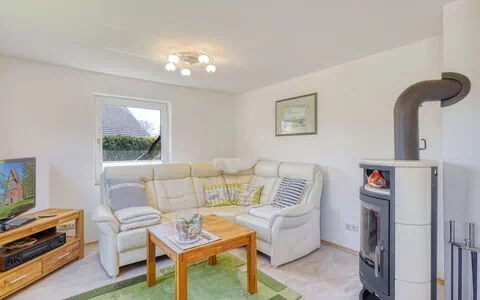 3-værelse-hus 85 m2. Smagfuld og hyggeligt indrettet: stue/spisestue med pejs, sat-TV og gas opvarming. 1 dobbeltværelse med 1 dobbeltseng (180 cm, længde 200 cm). Åbent køkken (ovn, opvaskemaskine, 4 keramiske kogeplader, Brødrister, kedel, mikroovn, elektrisk kaffemaskine). Brus/WC. Gulvvarme. Overetage: (vindeltrappe) skrå stue/soveværelse med 1 dobbeltseng (180 cm, længde 200 cm). Stor terrasse 15 m2, lille terrasse 4 m2. Havemøbler, grill, liggestole (2). Til benyttelse: højstol, barneseng til 2 år. Internet (trådløs LAN [WLAN], gratis). Bemærk venligst: velegnet for familier. Ikke-ryger hus. Brandalarm.