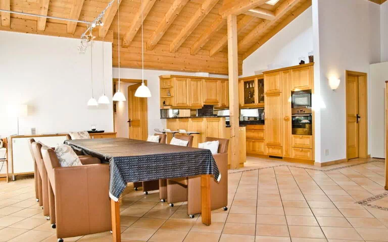 The luxurious 140m2 4.5-room attic apartment offers everything you need for a relaxing holiday. It has two bedrooms with double beds, one bedroom with two single beds, two bathrooms with shower and toilet and one bathroom with bath and toilet. The modern kitchen opens onto a cosy dining/living area with fireplace. The lift takes you directly from the underground garage to the apartment. The balcony offers a great view of the Eiger North Face.