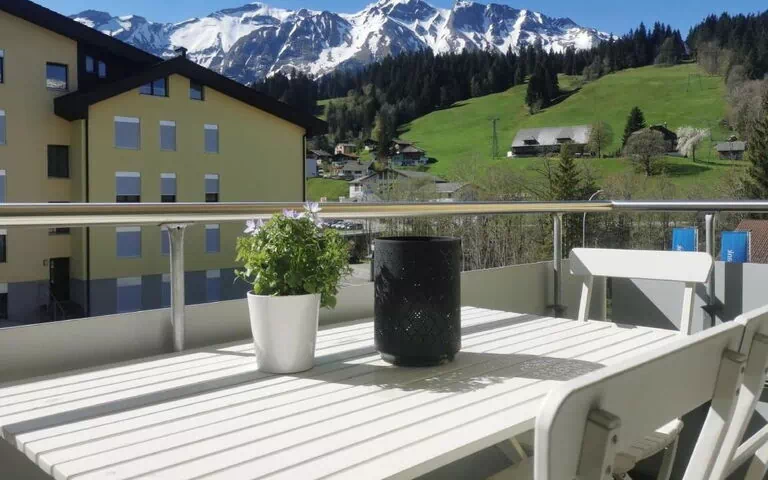 Very modern, cosy and sunny holiday flat with up to 6 beds, fireplace and balcony. The bedroom is furnished with a box-spring bed (1.80m), a bunk bed (1.40m), a large wardrobe and a small desk. The bathroom has a bathtub and WC (hairdryer available). The open-plan living room is cosily furnished with a sofa (extendable), a TV, dining table and lots of toys. The open-plan kitchen is modernly equipped with an induction hob and a convection oven. Raclette oven, fondue caquelon, toaster, coffee machine etc. are all available. The sunny balcony with a view of the Rothorn invites you to spend cosy hours. Parking space in the underground car park. Washing machine, sauna and ski room for shared use. 240 metres from the Rossweid gondola lift and the ski lifts.