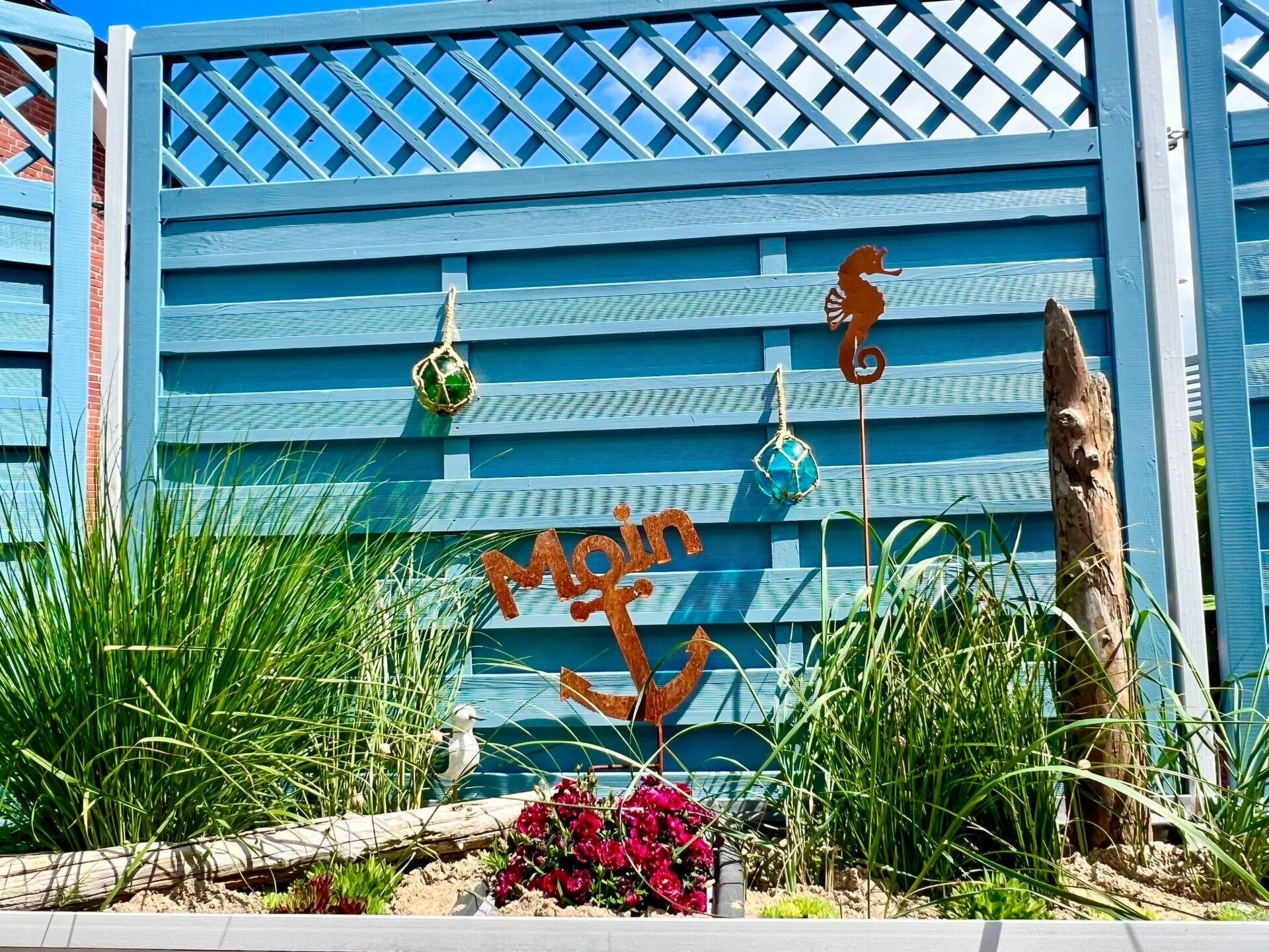 There is a free car parking space. The cosy garden comprises sunny terraces, garden furniture, canopy beach chairs and a grill area, inviting you to relax.