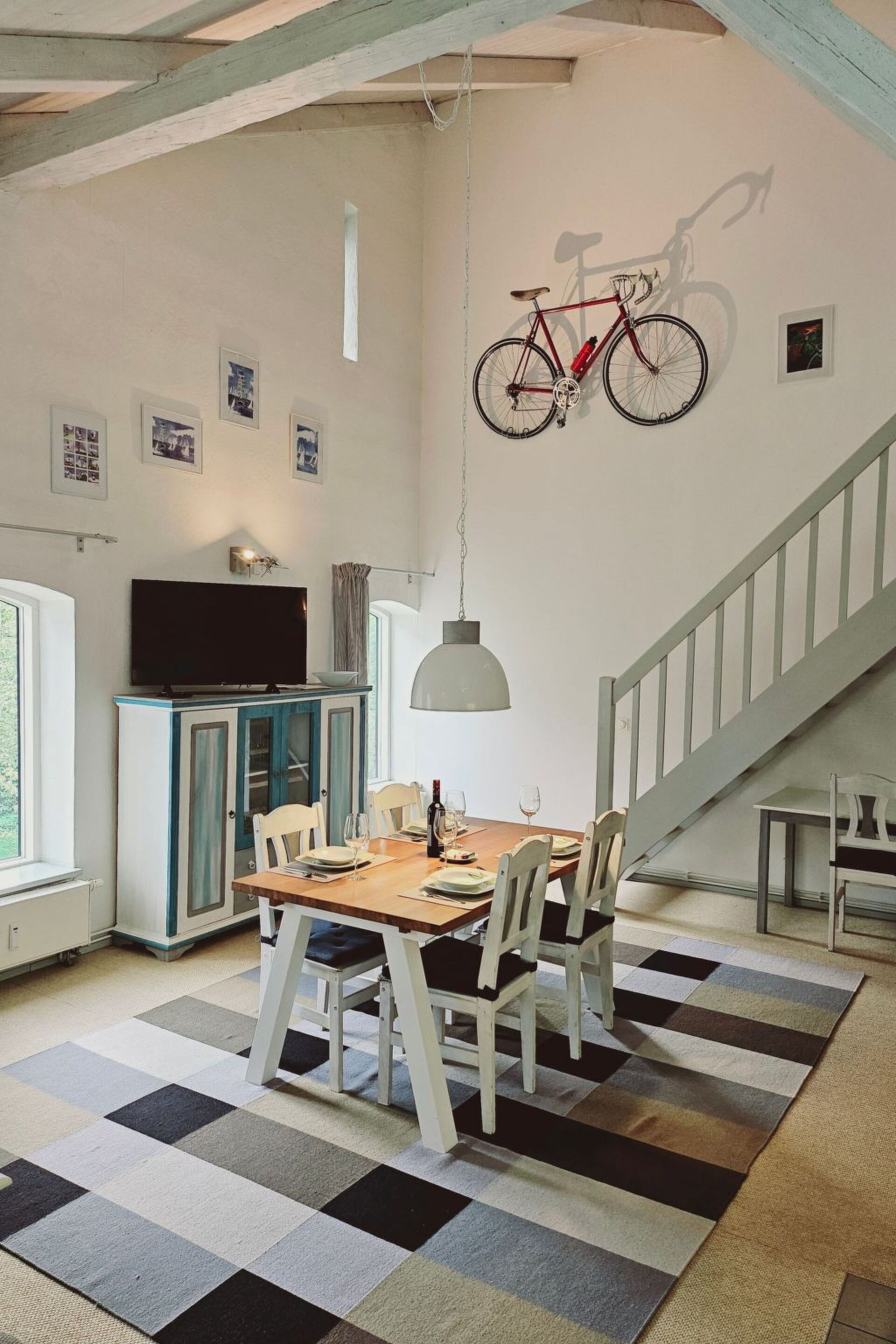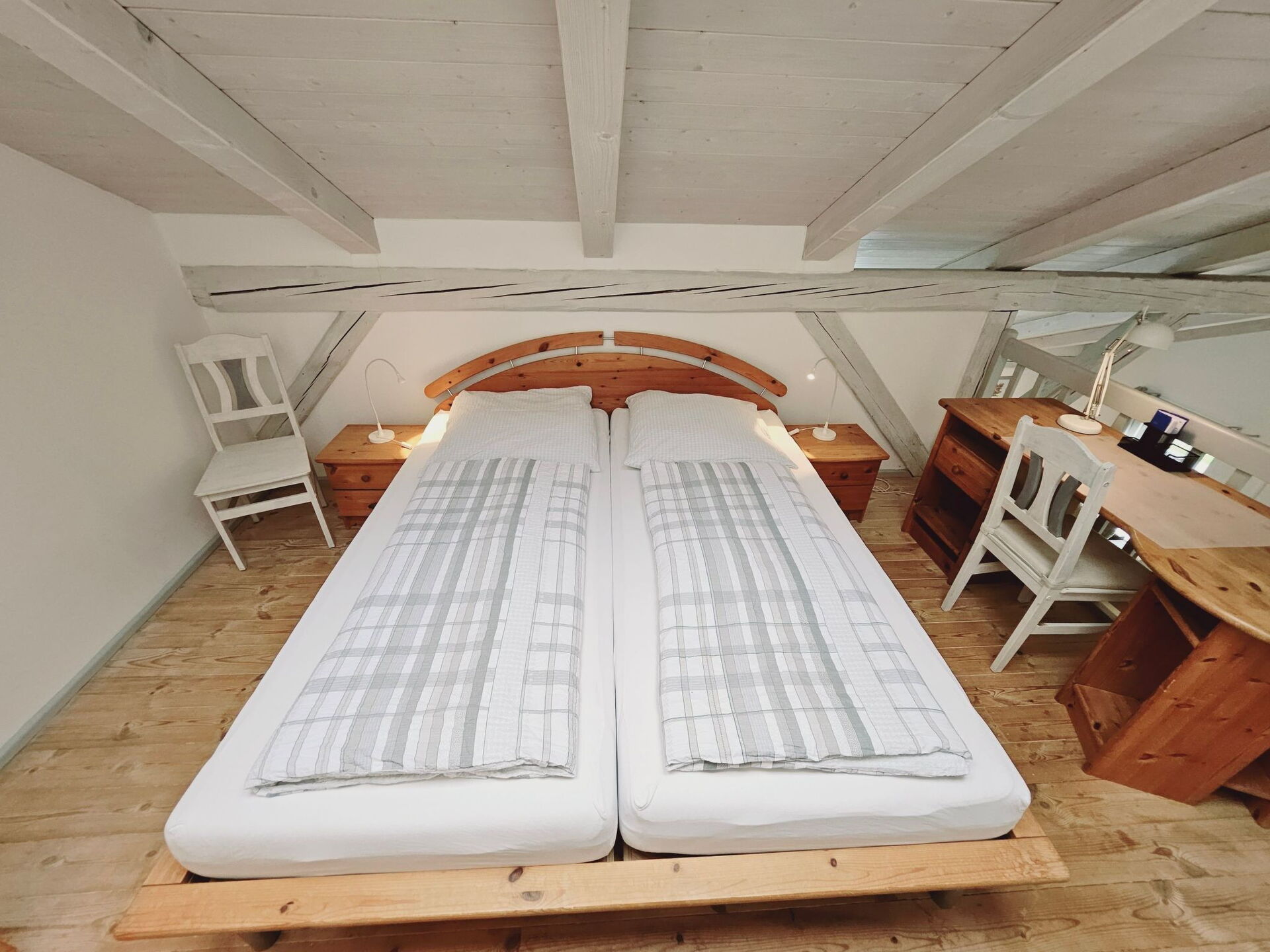 Inside, you will find a lavishly and ecologically renovated flat that is cosy and stylishly furnished. The separate bedroom with a spacious double bed and wardrobe promises relaxing nights. The eat-in kitchen leads up a staircase to the impressive gallery, which offers a charming retreat as well as another double bed, desk and a second TV. Equipped with modern amenities such as Smart TV/SAT, CD player with Bluetooth connection, a full kitchen including dishwasher and microwave, this flat leaves nothing to be desired.