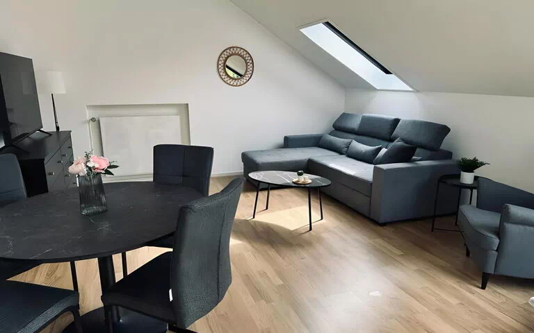 The outdoor area also leaves little to be desired. In addition to the aforementioned sun terrace, which offers a first-class view of the castle, there is also a roof terrace for unforgettable evenings in the open air. There is also a garden for communal use - ideal for making new friends or simply relaxing. Pets are welcome, regardless of their size, which makes a stay here ideal for the whole family.