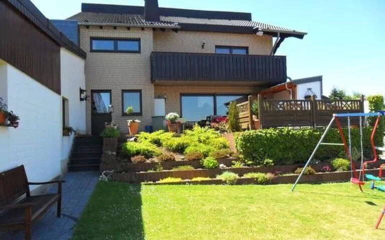 The outdoor area of the holiday flat invites you to relax outdoors with a small and a large balcony. The lovingly landscaped garden, for communal use, offers additional space for relaxation and outdoor activities. For guests who would like to explore the Eifel on two wheels, there is a garage for motorbikes and bicycles. In addition, a car park right next to the house guarantees hassle-free arrivals and departures.