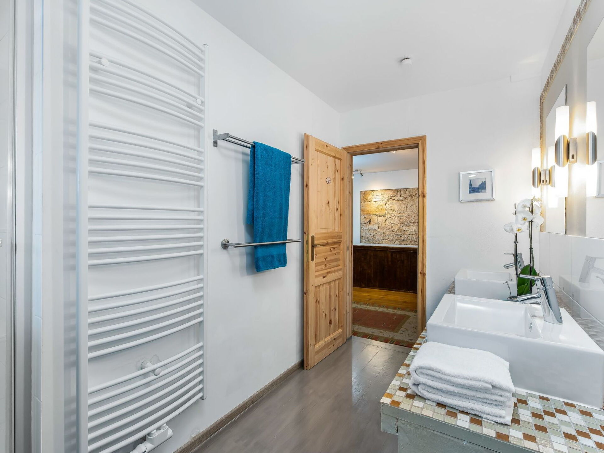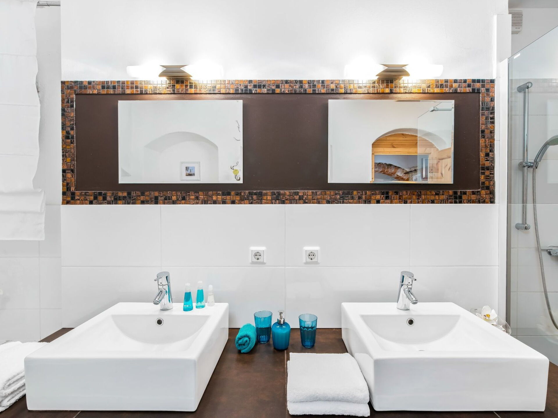 The entire living area on the ground floor is equipped with underfloor heating. Furthermore, on the ground floor is a double bedroom and a large bathroom with shower, bath, double sink and toilet In the upper floor there are 5 more beautiful double bedrooms and a large bathroom with shower, two toilets and double vanities.