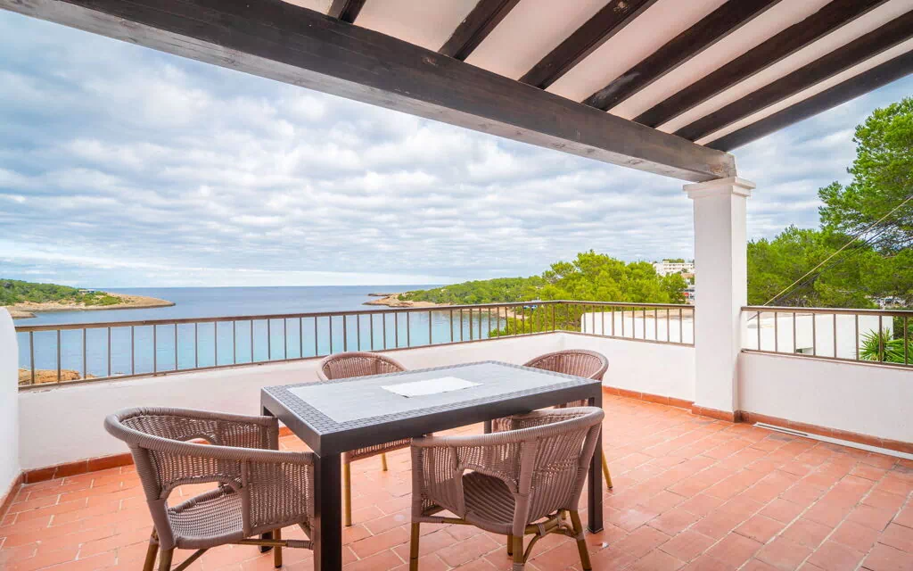 Portinatx 9 km fra Sant Joan de Labritja: Hyggeligt, enkelt aparthotel "Apartamentos Es Grop Portinatx". 17 lejligheder i ejendommen. Centrale, rolig beliggenhed, 1 km fra skovbryn, 30 m fra havet, 30 m fra stranden, direkte adgang til stranden. Til medbenyttelse: have, pool kantet (6 x 3 m, Sæsonbestemt tilgængelighed: 01.Apr. - 31.Okt.). Toilet i poolområdet, udendørs brus, terrasse. I huset: reception, restaurant, bistro, trådløs LAN [WLAN], elevator, aircondition. Parkeringsplads (for 10 biler). Indkøbsforretning, fødevarebutik 150 m, supermarked 200 m, restaurant, bar 10 m, bageri 150 m, café 100 m, fodgænger zone 10 m, busstoppested "Cala Portinatx" 350 m, sandstrand "Platja Portinatx" 15 m, dykkercenter 2 km, pool 10 m. Nærliggende attraktioner: Cala Xarraca 2 km, Cala de Xuclar 850 m, Cala d'en Serra 1.9 km, Faro de Portinatx 1.5 km, Faro de la punta de Moscater 2.5 km. Vandrestier Sendero del Far des Moscater 1.5 km. Bemærk venligst: Af- og pålæsning af bagage er mulig ved ferieboligen. Overvåget residence. Hovedvej 60 m fra huset. Flyveplads 36 km fra huset. Vandhanen har ingen drikkevandskvalitet. Ferieboligen kan variere i boligareal, plantegning, udstyr og møbler.