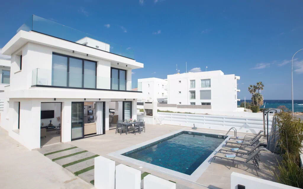 This charming and elegant villa is located in the Ayia Triada area, with the beach almost on your doorstep and just a few minutes drive to the resort centres of Kapparis, Pernera and Protaras. Its contemporary décor, comfortable furnishings and outstanding sea views, make this villa ideal for those looking for a relaxing and peaceful break.