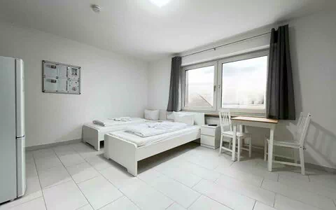 The furnished 31 m² upper floor flat near Regensburg has one bedroom with two single beds and is suitable for two people.