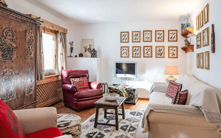 "Chesa Saira 2", 3-værelse-lejlighed 90 m2, i stueetagen. Smagfuld og med meget træ indrettet: åben stue/spisestue med spisebord og TV (fladskærms TV). Udgang til havesideplads. 1 dobbeltværelse med 1 dobbeltseng (2 x 90 cm, længde 200 cm). 1 værelse med 1 seng (90 cm, længde 190 cm), 1 x 2 køjesenge (90 cm, længde 190 cm). Åbent køkken (ovn, opvaskemaskine, 4 keramiske kogeplader, Brødrister, kedel, elektrisk kaffemaskine, Kapsler til kaffemasin (Nespresso) ekstra, raclettegrill, fonduesæt (ost )). Brus/bidet/WC, særskilt toilet. Opvarming. Trægulve. Havesiddeplads. Havemøbler, liggestole (2). Udsigt over bjergene og landskabet. Til benyttelse: strygejern hårtørrer. Ekstra. Garage nr. 29 på grunden (1 Bil), højde 215 cm, bredde 220 cm. Bemærk venligst: ikke-ryger lejlighed, ikke-ryger hus. Maksimum 2 små husdyr/hunde tilladt. Ingen elevator.