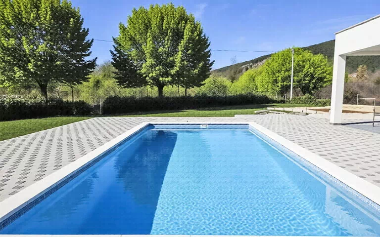 Donji Proložac 5 km fra Imotski: Enfamiliehus "Nature", bygget i 2026. Rolig, solrige beliggenhed, 29 km fra havet, 29 km fra stranden, i en blind vej. Til alene benyttelse: grund 1'030 m2 (indhegnet) med græsplane 200 m2, pool kantet (8 x 4 m, 150 cm dyb, Sæsonbestemt tilgængelighed: 01.Maj. - 01.Okt.). Udendørs brus, terrasse (15 m2), havemøbler, grill. I huset: adgang til internet, vaskemaskine. Parkeringsplads (for 3 biler) ved huset på grunden. Indkøbsforretning 500 m, restaurant 2.5 km, busstoppested 500 m, kiselstenstrand 29 km, klippestrand 29 km. Kendte søer nås nemt: Modro jezero 5 km, Crveno jezero 5 km.