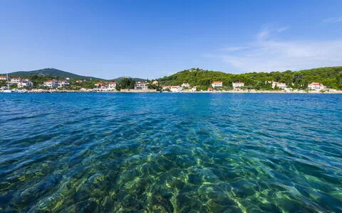 Lukoran 4 km from Preko: Semi-detached house "Valter". 6 km from the centre of Ugljan, outside the resort Lukoran, in a quiet, elevated position, 300 m from the sea. Private: natural garden. Outdoor shower, barbecue. In the house: internet access. Parking at the house. Shop, restaurant, shingle beach, rocky beach 300 m.