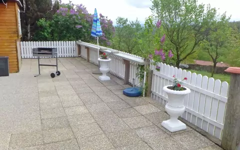2-værelse-chalet 45 m2. Emner egnet for 2 voksne + 2 børn. Delvis renoveret i år 2020, smagfuld og hyggeligt indrettet: stue/soveværelse med 1 udtræksseng (2 pers. 2 x 90 cm, længde 200 cm), spisehjørne, sat-TV og fladskærms TV. Udgang til terrasse. Åbent køkken (ovn, 4 keramiske kogeplader, mikroovn, grill, elektrisk kaffemaskine, Kapsler til kaffemasin (Delizio), raclettegrill, fonduesæt (ost )) med 2 senge (90 cm, længde 200 cm), pejs. Brus/WC. Træ-opvarming, vandkoger. Terrasse 50 m2. Havemøbler, liggestole (2). Meget flotte udsigt over landskabet. Til benyttelse: myggenet hårtørrer, brænde (ekstra). Parkeringsplads ved huset. Bemærk venligst: ikke-ryger lejlighed. Maksimum 2 husdyr/hunde tilladt.