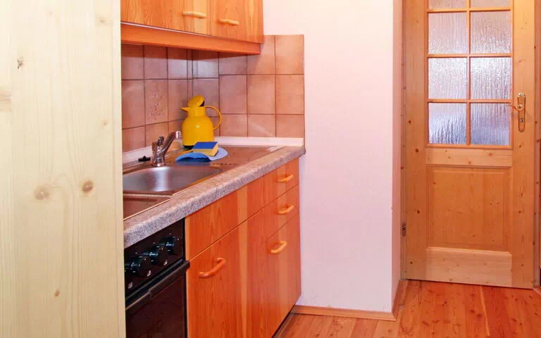 "Anke", 1-room apartment 27 m2 on 1st floor. Partly with sloping ceilings, cosy furnishings: living/sleeping room with 1 double bed, satellite TV, radio and CD-player. Exit to the balcony. Small kitchen (4 hot plates, oven, microwave) with dining table. Shower/WC. Electric heating, solar energy heating. Balcony. Very beautiful view of the countryside.