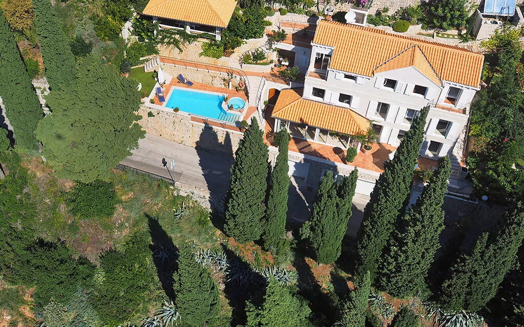 Exclusive and luxuriously appointed private villa overlooking the Adriatic Sea, Lokrum Island and the Old City of Dubrovnik. Villa Lucija is situated within a ten-minute walk of the historic town of Dubrovnik, in Dubrovnik’s most elite and private residential neighborhood. Outdoor areas of the villa offer a mix of options for relaxation: the swimming pool with a Jacuzzi surrounded by spacious terraces and a shaded garden with exotic Mediterranean plants and Cyprus trees, sun terraces, “Glorijet” - a covered terrace on the uppermost level of the garden, providing an authentic Mediterranean outdoor living experience, which is ideal for parties, cocktails, gala dinners or informal lunches. Gourmet breakfast can be served here on request (extra). Comfortable, luxurious villa "Lucija", 3 storeys, surrounded by trees. 1 km from the centre, in a quiet, sunny, elevated position, 100 m from the sea, 100 m from the beach, south facing position. Private: property 750 m2 (fenced), well-kept garden with wildlife garden and flowers, swimming pool angular (6 x 4 m, depth 250 cm, 15.04.-30.09.) with internal staircase. Outdoor shower, arbour (20 m2), terrace, garden furniture. In the house: internet access, central heating system, air conditioning, burglar alarm system, laundry. Towel change 2 times per week. Room cleaning 2 times per week (included). House maid on request (extra). Cook on request (extra). Breakfast possible on request (extra). Restaurant, café 200 m, pebble beach 600 m, rocky beach 100 m, public bathing area 600 m. Wellness, beauty centre, gym room at the nearby hotel Argentina. On request possibility of following services (to be paid extra): rental of luxurious car or yacht, limousine service and car rentals, boat trips, yacht charters, sightseeing tours, in-house catering, laundry service.