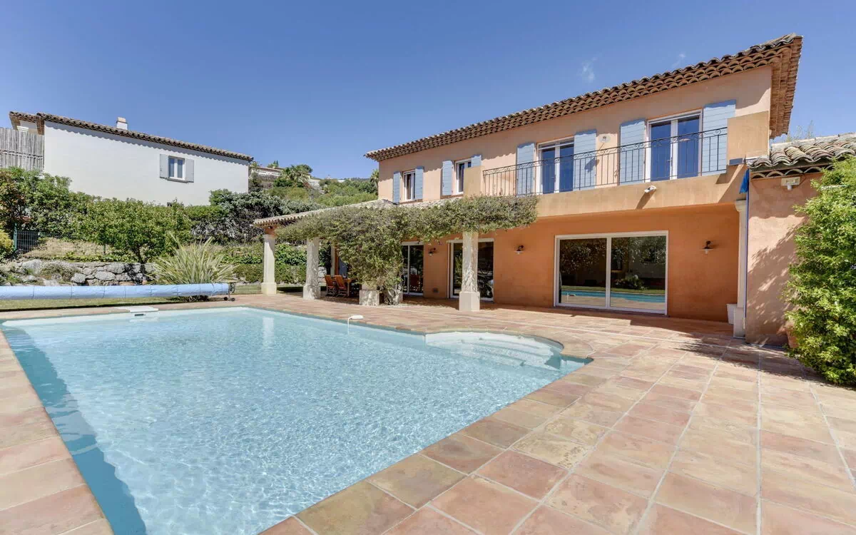 Meget smuk, komfortabelt villa "Les Suves 2". I byen, 2.2 km fra bymidten af Cavalaire sur Mer, rolig, solrige beliggenhed, 1.2 km fra havet, retning syd øst. Til alene benyttelse: grund 1'180 m2 (indhegnet), pool kantet (10 x 5 m, 110 - 170 cm dyb, Sæsonbestemt tilgængelighed: 01.Jun. - 30.Sep.) med indetrappe og alarmanlæg. Terrasse (40 m2). I huset: trådløs LAN [WLAN], aircondition. Rengøring af lejlighed 1 gang ugentlig muligt (ekstra). Parkeringsplads (for 3 biler) på grunden. Indkøbsforretning 2 km, fødevarebutik 1.2 km, supermarked 3 km, indkøbscenter 10 km, restaurant 1.5 km, bageri 1.2 km, sandstrand "Marina Viva, Bon Bini Beach" 1.4 km, park "Aqualand" 25 km, dykkercenter 2.4 km. Lystbådhavn 2.5 km, sejladsskole 2 km, tennis 300 m, minigolf 12 km, ridehal 800 m, cykelvej 1 km. Nærliggende attraktioner: Azur Park, Paint-ball 12 km, Bowling à Port-Grimaud 13 km, St-Tropez 17 km, Ste-Maxime 24 km. Vandrestier Sentier du Fenouillet 4.5 km, Sentier du littoral 7 km, Toulon 60 km.