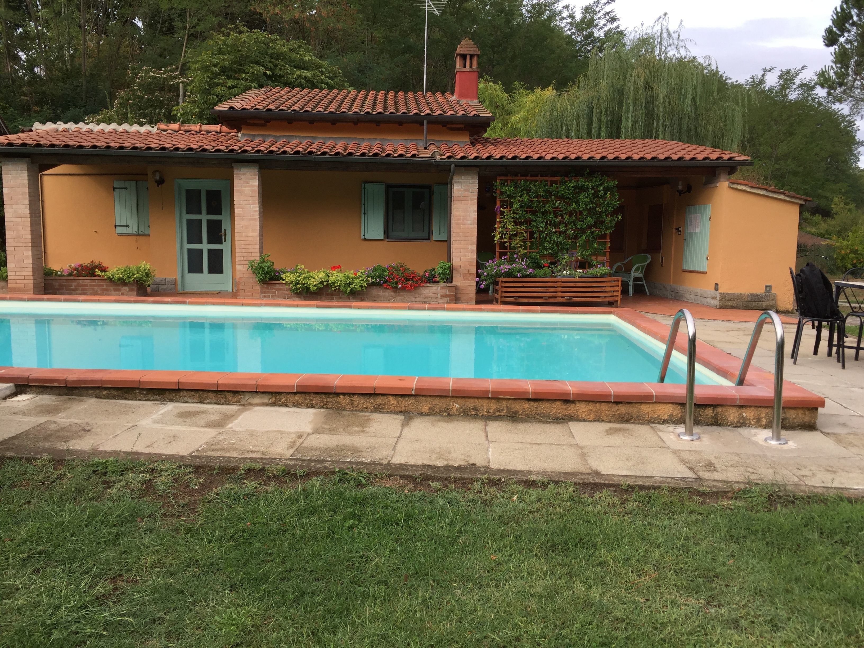The little house is surrounded by a fully-fenced garden with a well-kept lawn, shaded by tall pines and filled with flowers, where your pets can run freely. A view of the surrounding vineyards and hills will accompany your lazy summer days, along with several corners designed for relaxing in peace. You decide which is the best spot to enjoy the view... whether it is from the cool water of your private swimming pool (5x11 m, depth 1.20-1.80 m - open from 01st May to 30th September), or from an armchair under the pergolas, perhaps from the shady gazebo hidden among the trees, or from a sun lounger by the pool...